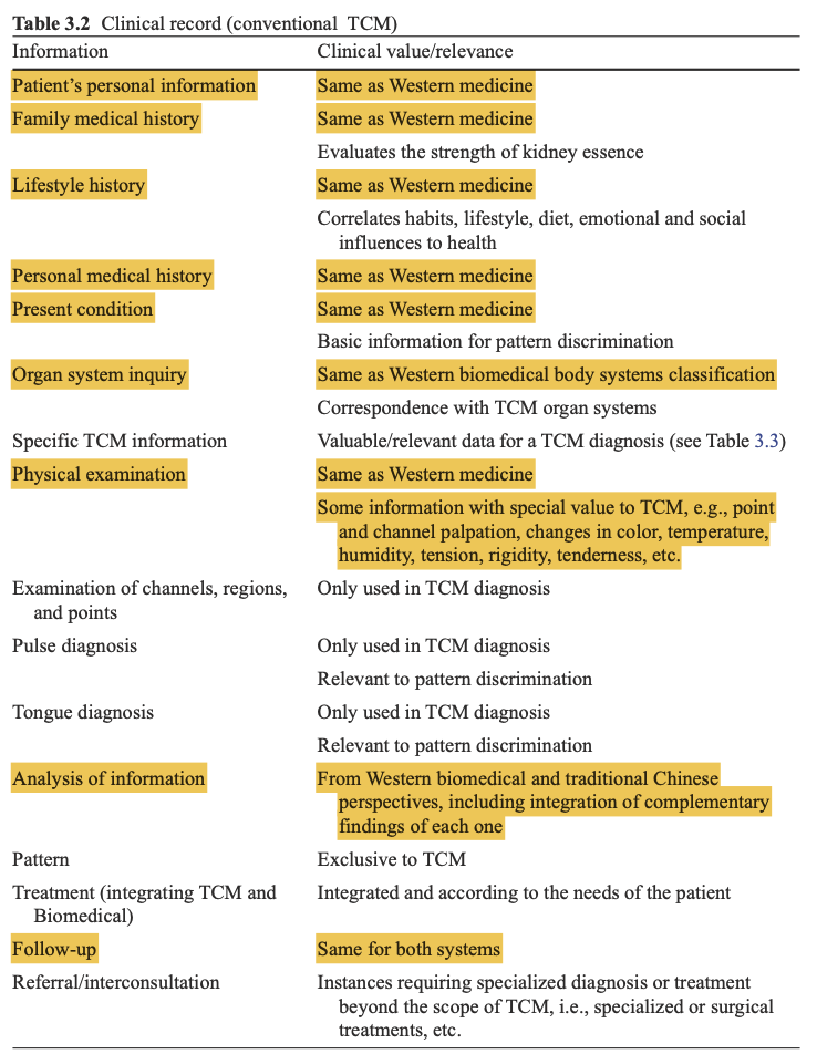On this note, patient information retrieved during TCM treatment are also vastly similar to the diagnosis processes and the clinical records of Western medicine.