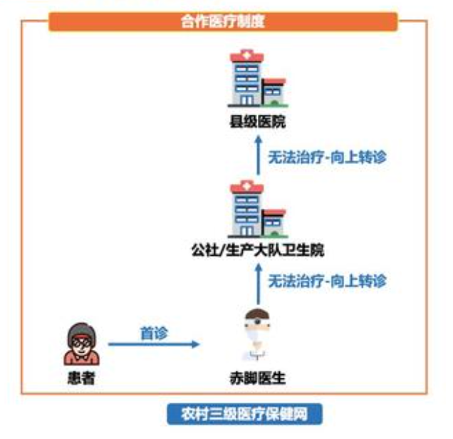In conjunction to the establishment of the three-tier health care network (sanji weisheng baojian wang 三级医疗卫生保健网), there was an increased recognition to bring effective health care needs to the rural regions. This led to the establishment of rural communes (大队医疗站) and barefoot doctors (chijiao yisheng 赤脚医生), which formed the lowest tier of the three-tier health care network. (Wei, 2013)