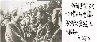 Mao Zedong shaking hands with the experimental class's (医学习中医研究班) director.